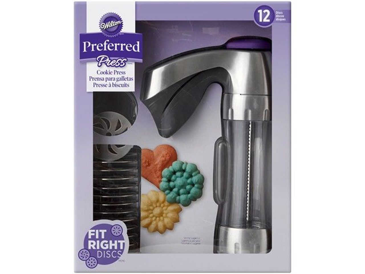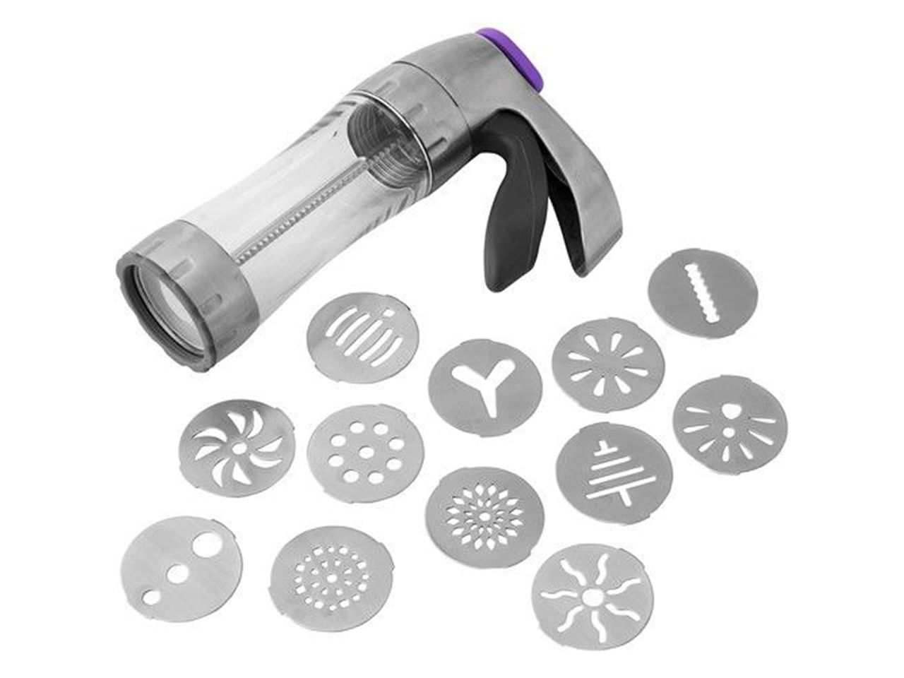 In dem Set erhalten Sie die Cookie Press mit 12 verschiedenen Discs aus Metall mit klassischen und saisonalen Ikonen, sowie Trendformen.